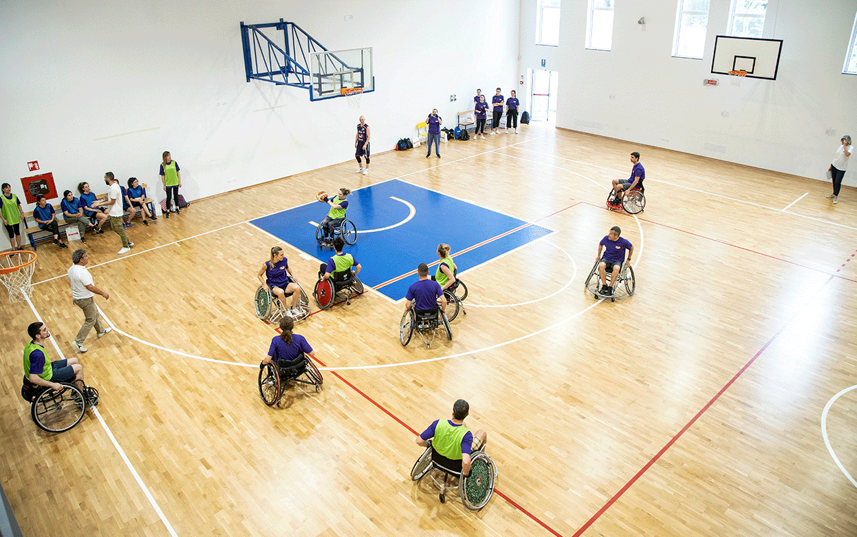 A gym, wheels racing, eyes searching, chasing and finding each other: an emotionally charged day involved the Menarini Group’s employees and the Volpi Rosse Menarini wheelchair basketball team in a meaningful team building event to experience the Group’s values beyond barriers.