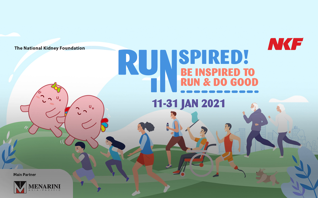 In order to spread awareness and to advocate kidney health as a nation, the NKF organized Run Inspired! 2021, an inaugural three-week virtual charity running event which took place from the 11th to the 31st of January 2021. This is the first “virtual” charity run by NKF of Singapore, where participants can run at their own pace and space having four race categories to choose from: 5 km, 10 km, 21 km and 55 km. The race distance is cumulative over 21 days.